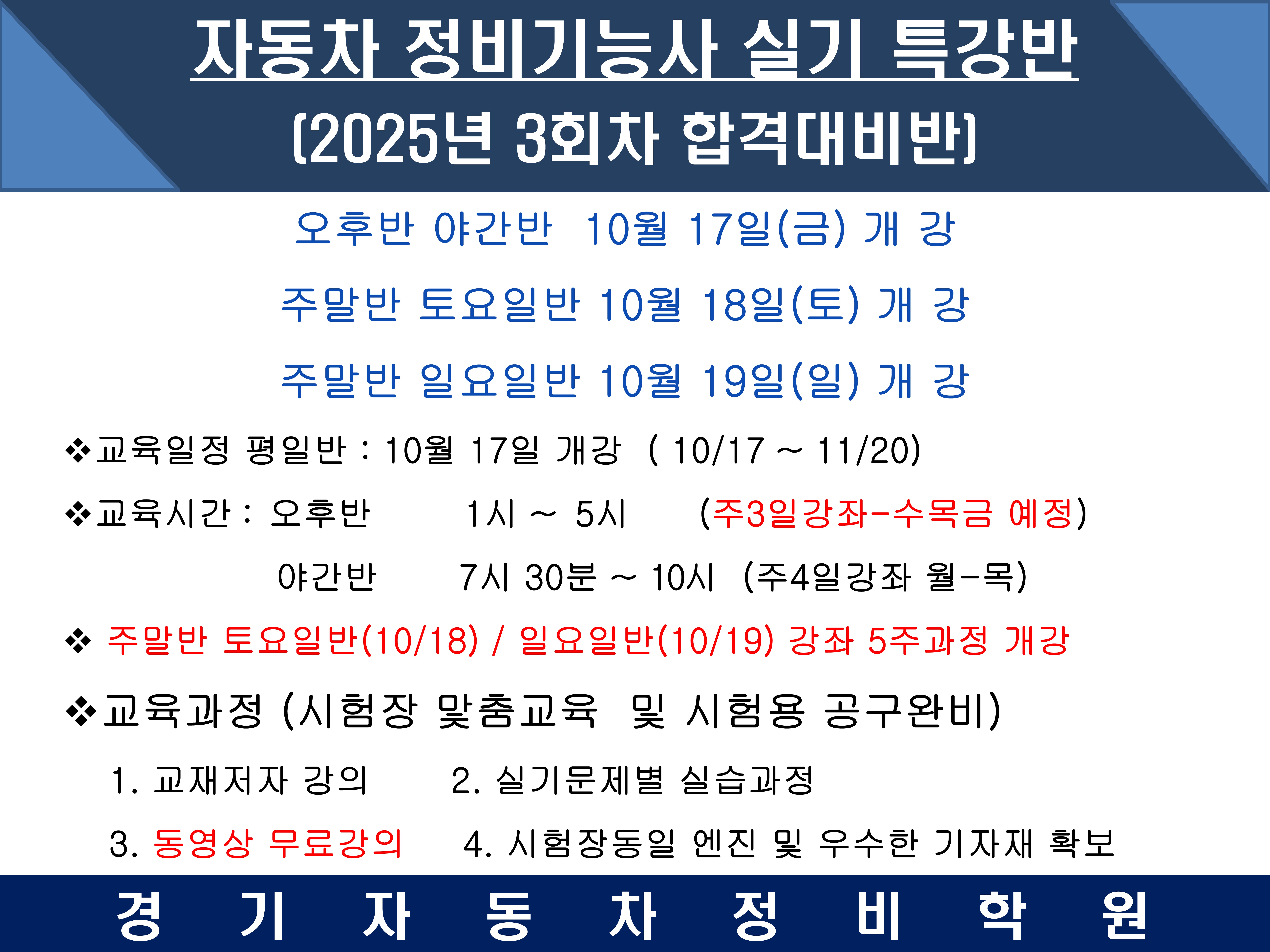 2025년 자동차정비기능사4차 실기시험합격대비과정
