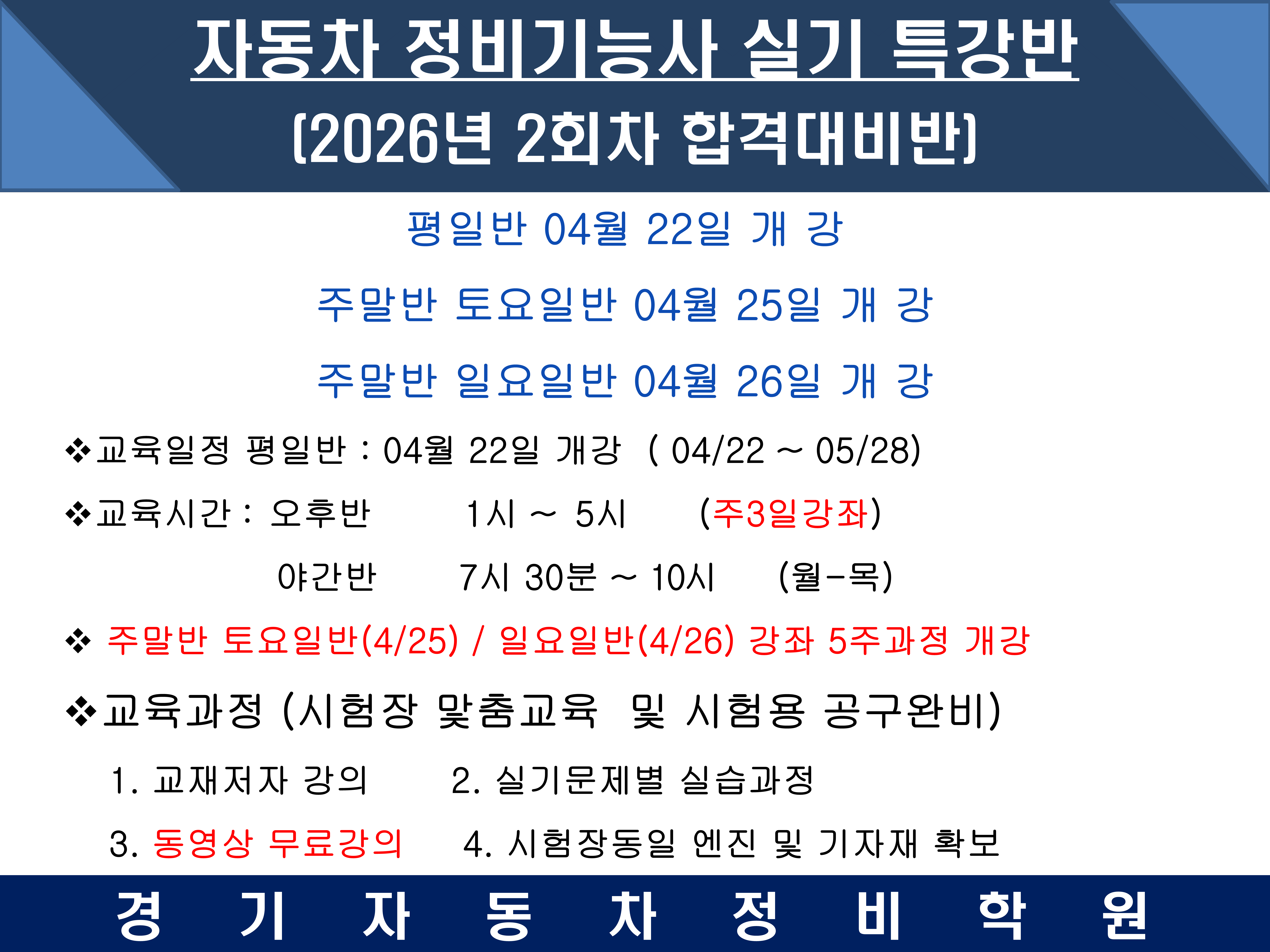 합격을 위한 정비실기 문제해설 실습교육과 홈페이지 영상강좌을 통한 복습과정으로 많은 합격자를 배출하고 있습니다